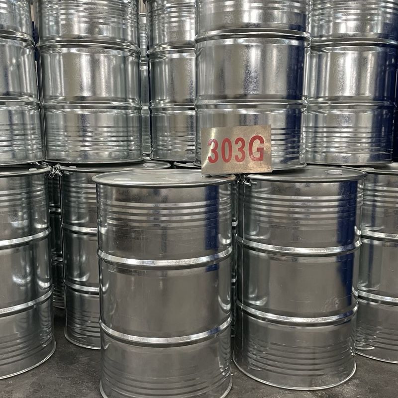 303G jest dobrze tolerowaną żywicą aminową silnie eterowaną metylem, bez wolnego formaldehydu, o zawartości części stałych 98%